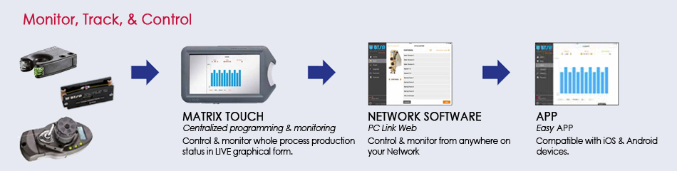 PC Link Web is the latest BTSR technology allowing advanced BTSR sensor programming & monitoring of the production line. Developed with Touch-screen and Multi-language technologies for user-friendly operation, PC Link Web is connected to with Wifi & Ethernet interface. The machine operator can easily download & upload indentification data, as well as program the sensor parameters