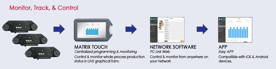 4. STOP MOTION / PRODUCTION TRACKING - As with all our sensors, the TMS provides LIVE production tracking which can connect to our Network software, giving you automation at multiple levels. This cloud based system monitors & tracks all yarn stops, breaks, & doffs for showing production/waste in real time. It can also connect to any PC or smartphone to give you instant visibility of your production from anywhere in the world.